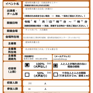 愛知県弁護士会トップページ > 弁護士業務改革委員会の最新情報 > 行政法律セミナー開催に際しての感染防止策チェックリスト