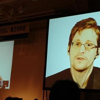 10月5日、滋賀県大津市で開催された標記シンポジウムに集まった780人もの参加者のお目当ては、間違いなくエドワード・スノーデン氏だった。会場に配置された3つのスクリーンには、あのスノーデン氏の顔が大写しにされた。ロシアと会場とを結んでのライブインタビューである。
