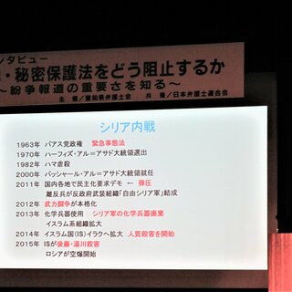 対談では、「日本政府の何もするなという姿勢では、自分で情報に接近して真実を見極めることができず、『自己責任』を取ることもできない。このような姿勢と不寛容な空気が共謀罪を適用しやすく、適用しても批判されない社会にしている。自由な海外取材ができず、外国にとって都合のよい情報だけ知らされる日本の『特定秘密』には疑問がある」などのお話がされました。