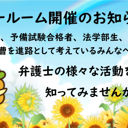 また、ロールームは、司法試験を終えられた方だけでなく、法科大学院生や予備試験受験生、法学部生等の大学生、司法修習生、若手弁護士にとっても、弁護士の様々な仕事や活動を知る大変有意義な時間と考えております。皆様の積極的なご参加をお待ちしております。