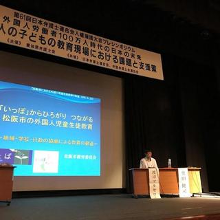 第2部では、外国人教育の先進地域である松阪市の教育委員会の奥田健司氏と、13歳で来日し現在は行政書士として活動されている日系ブラジル人の渡辺マルセロ氏に参加していただき、小島氏と3人でパネルディスカッションをしていただきました。