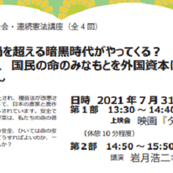 第2回講座 「コロナ禍を超える暗黒時代がやってくる?~国は、国民の命のみなもとを外国資本に売り渡した~」