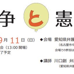 本年度の連続憲法講座第2回は、講師に川口創弁護士(愛知県弁護士会)をお迎えして、「戦争と憲法」をテーマに皆さんとともに考えて行きたいと思っています。