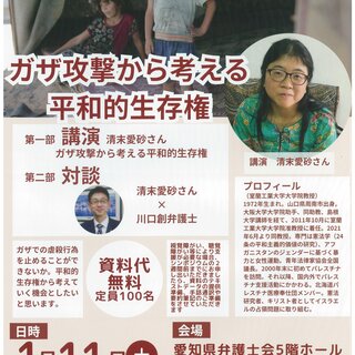 本年度連続憲法講座第3回は、講師に清末愛砂氏(室蘭工業大学大学院教授 憲法学)をお迎えして、ガザ攻撃を平和的生存権から考えあう講座を開催します。