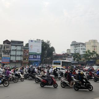 <ハノイ市内朝の通勤ラッシュ風景>