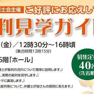 そんな思いをお持ちの皆様へ、私たち弁護士が、無料でガイド役として、裁判の仕組みを説明し、裁判見学(傍聴)にご案内します。また、ミニ講演も実施します!是非一緒に裁判を見学(傍聴)してみませんか?