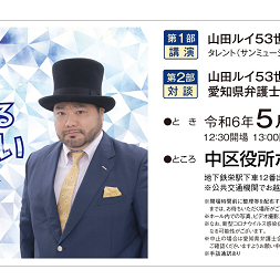 今回の「憲法週間記念行事」では、人気タレントである山田ルイ53世(髭男爵)さんをお招きして、「僕たちにはキラキラする義務などない~多様性社会のルネッサンス」と題する講演・対談を開催いたします。