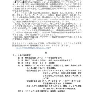 > 「情報商材関連詐欺被害撲滅全国一斉110番」開催のお知らせ(9/13)