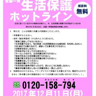 全国一斉生活保護ホットラインのお知らせ 平成29年12月11日(月)
