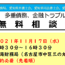 多重債務、金融トラブル 無料相談会を実施します(2021年11月17日(水)9:30~16:30)
