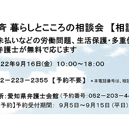解雇や賃金未払いなどの労働問題、生活保護・多重債務などの生活問題に弁護士が無料で応じます。