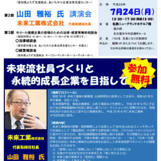 公益財団法人あいち産業振興機構・愛知県弁護士会 連携記念講演会 及び 法律・経営等無料相談会(7/24)