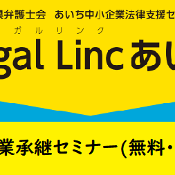 愛知県弁護士会「Legal linc あいち」(あいち中小企業法律支援センター)・日本政策金融公庫は、下記のとおり事業承継セミナーを共催します。